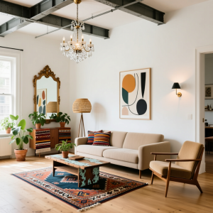• Define Zones with Rugs: Use area rugs to visually separate the living, dining, and workspace in an open-plan studio without building walls.